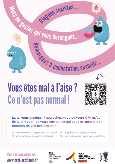 L’association Une sur Cinq, en partenariat avec la DREETS Occitanie et la DRDFE Occitanie, a mené tout au long de l’année 2025 un projet expérimental visant à prévenir les violences sexistes et sexuelles au travail auprès des jeunes en formation professionnelle.